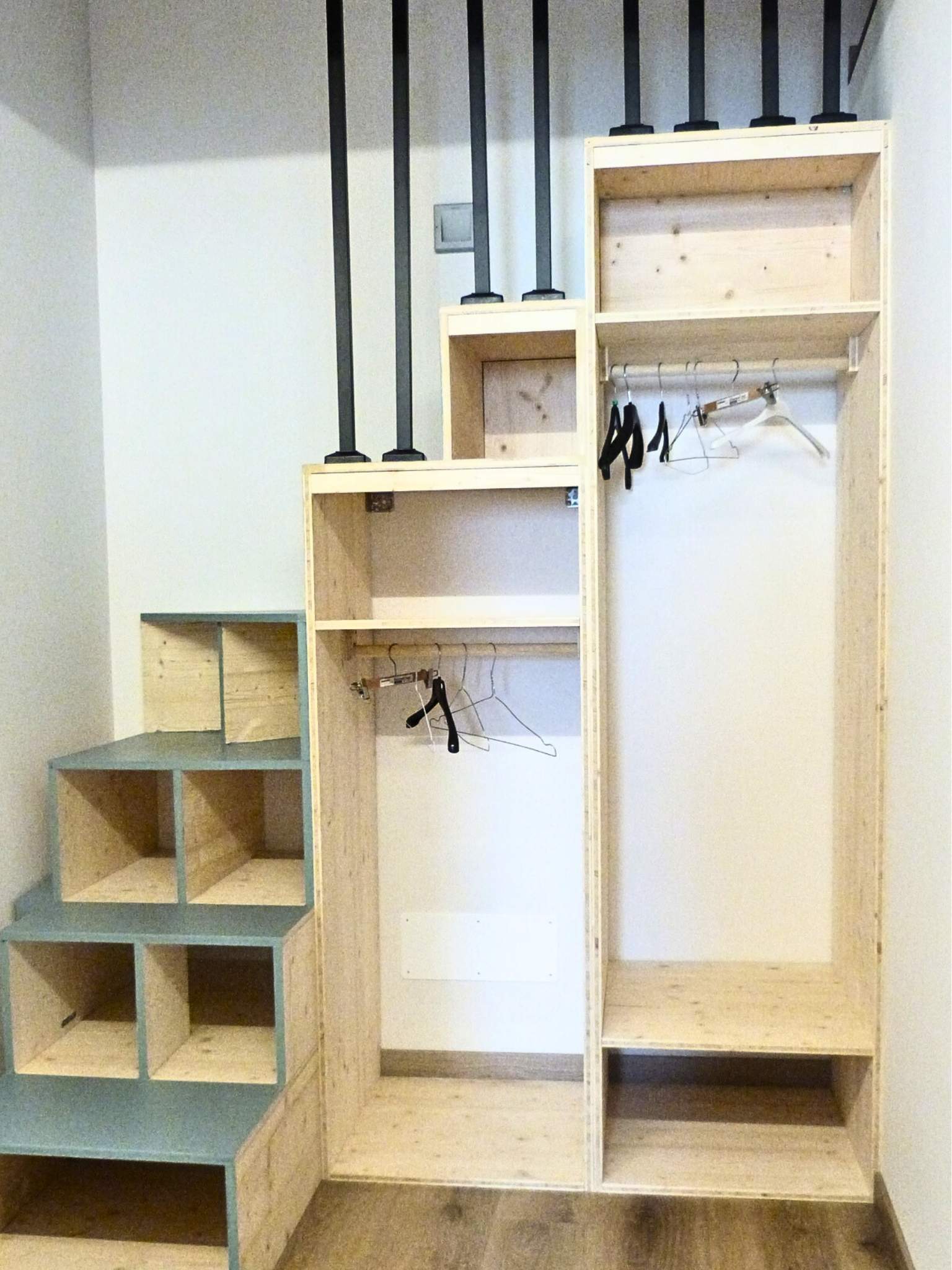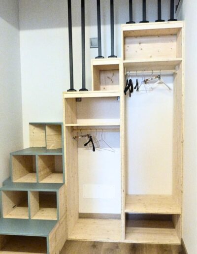 - Artigianato & Funzione: Il progetto celebra il “fatto a mano”. La scala, cuore architettonico della casa realizzata da Claudio, non è solo un collegamento ma un asset funzionale che integra l’armadiatura principale, ottimizzando ogni centimetro con estetica farmhouse.