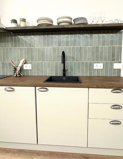 - L’Elemento Roots: La trasformazione di elementi classici in icone moderne, come la cucina tradizionale rivitalizzata dal colore azzurro, e la scelta di schemi di posa per le ceramiche 10×26 e 15×15 che reinterpretano la tradizione in chiave editoriale.
